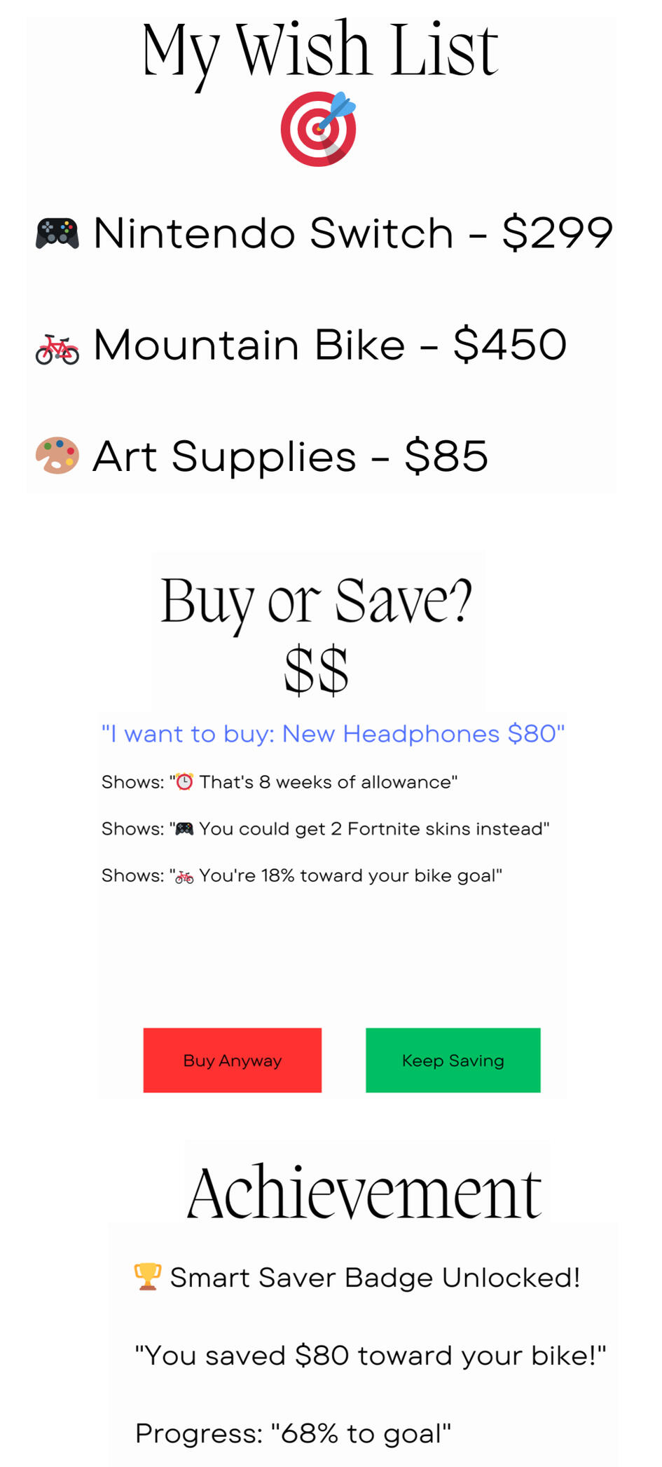 They prioritize what they REALLY want.βοΈ "Buy or Save?" Tool